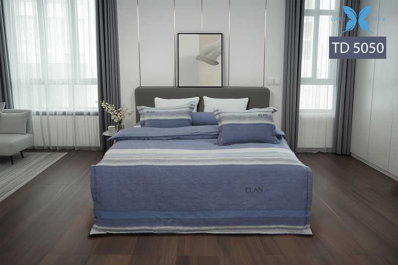 Bộ ga chun chần Tencel in cao cấp TD5050 có phong cách phù hợp với nhiều không gian phòng ngủ.