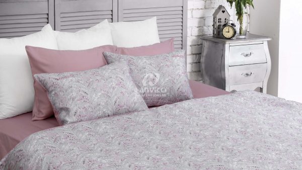 Bộ ga chun Hanvico My Youth – MY65 mang sắc hồng phối xám cùng những hoạt tiết nhã nhặn mang đến cảm giác vừa ngọt ngào, vừa tinh tế.