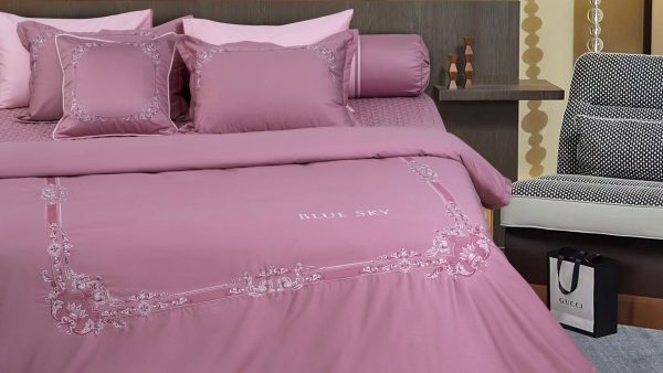 Bộ ga Hanvico phủ thêu Blue Sky - BSM100 mang gam hồng sang trọng tô điểm họa tiết thêu tinh tế mang đến sự mới mẻ và ấn tượng cho không gian phòng ngủ.