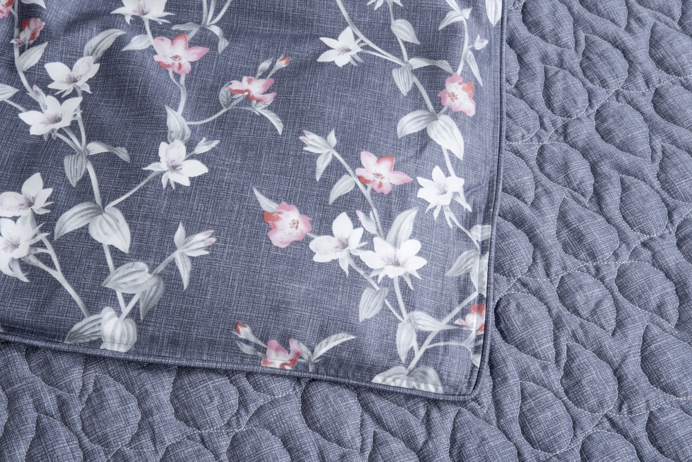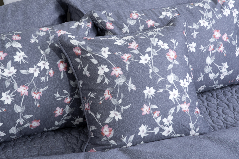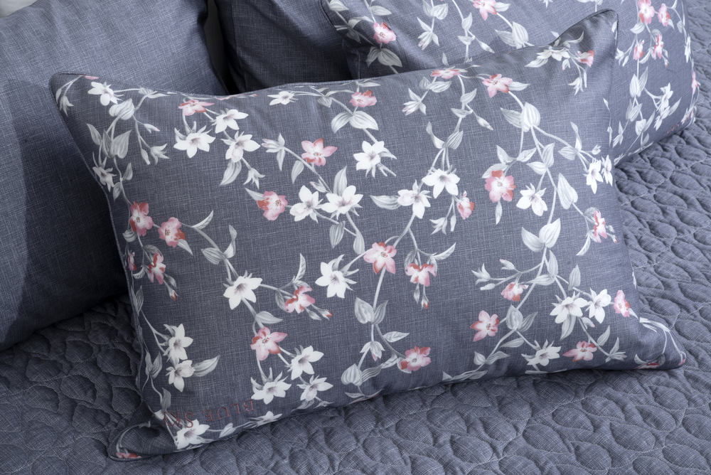 Bộ Hanvico Blue Sky Cotton T – DLP187 mang gam màu xám nhã nhặn cùng họa tiết sắc nét sinh động mang lại cảm giác sang trọng và tinh tế cho không gian phòng ngủ.