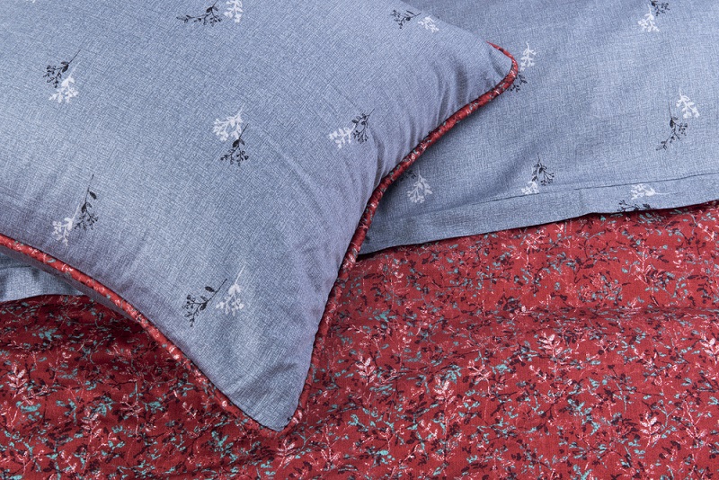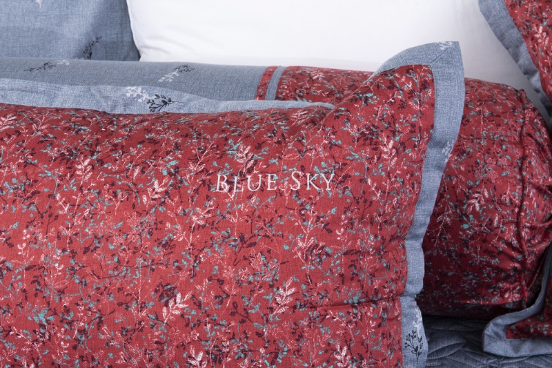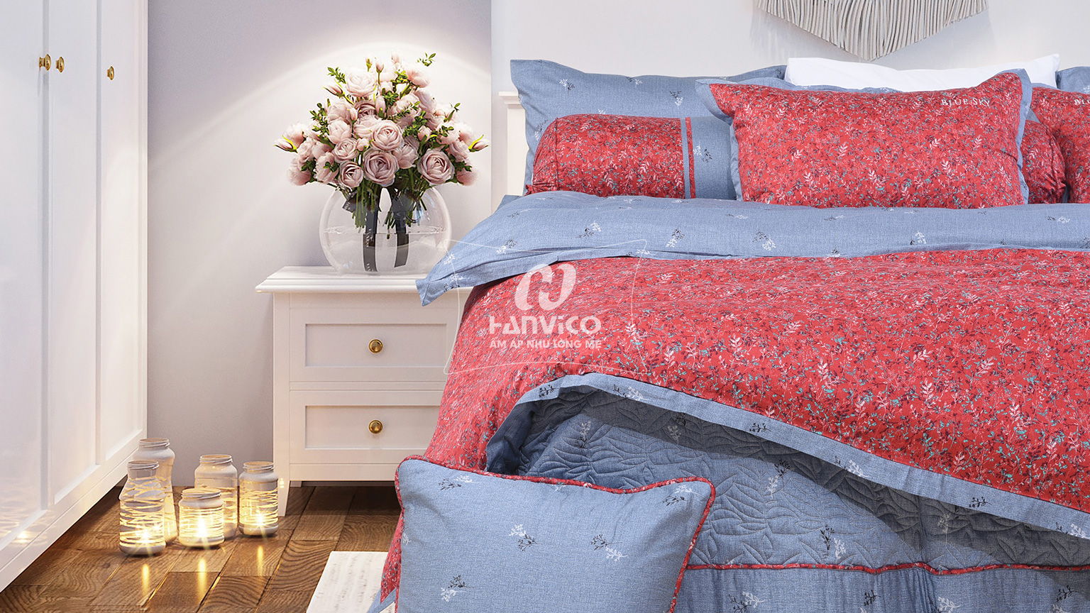 Bộ Hanvico Blue Sky Cotton T – DLP188 mang gam màu xám đỏ cùng họa tiết sắc nét sinh động mang lại cảm giác sang trọng và tinh tế cho không gian phòng ngủ.