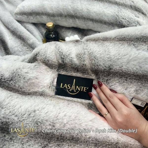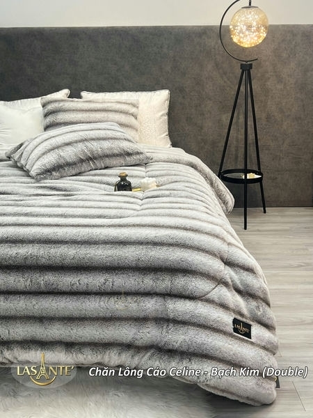 Chăn lông cáo Lasante Celine bạch kim (Doulble) được sản xuất trên dây chuyền công nghệ hiện đại .