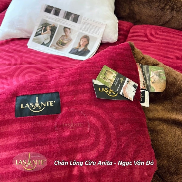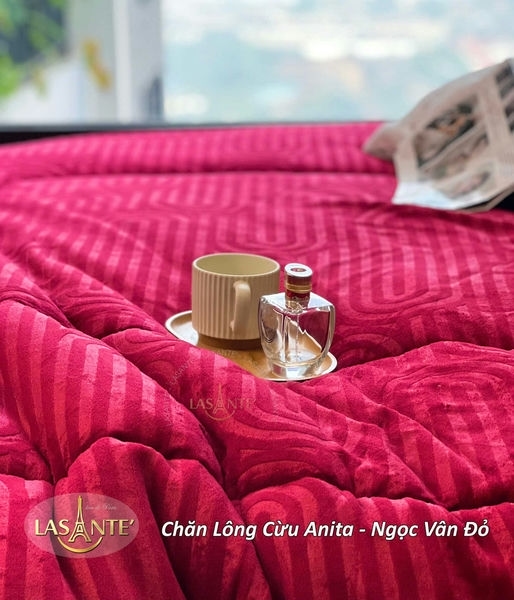 Chăn lông cừu Lasante Anita Ngọc Vân đỏ được sản xuất trên dây chuyền công nghệ hiện đại .