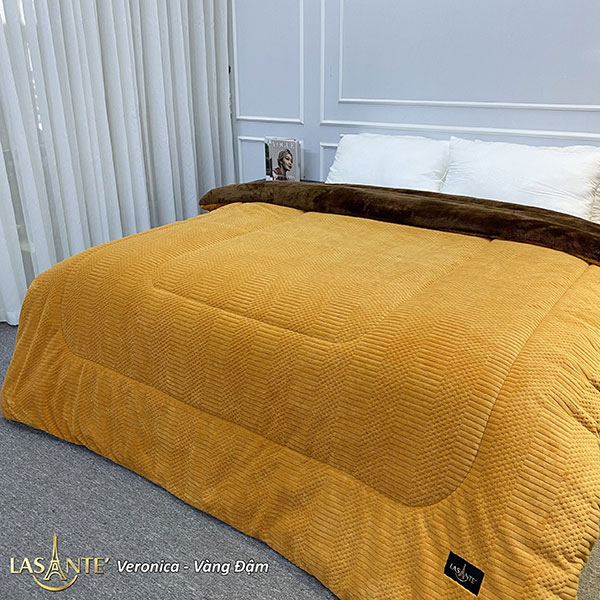 Chăn lông cừu Lasante Veronica màu vàng được sản xuất trên dây chuyền công nghệ hiện đại .