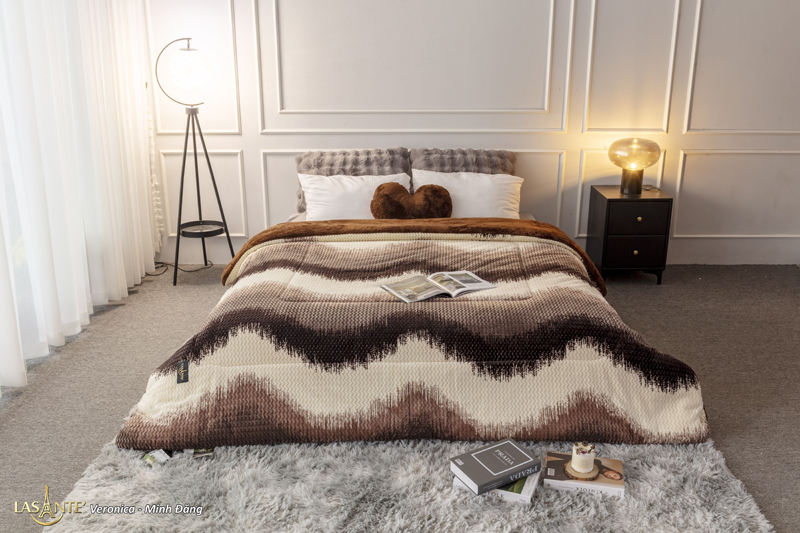 Chăn nổi bật với đường nét sang trọng, màu sắc nét, chăn êm, nhẹ, đẳng cấp.