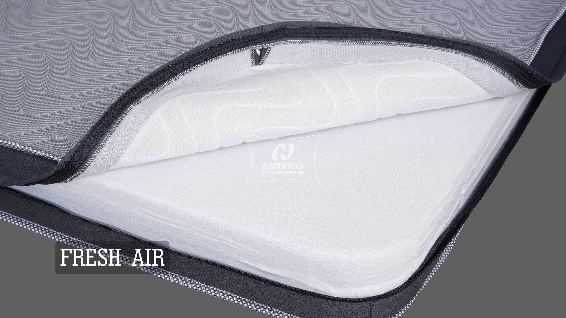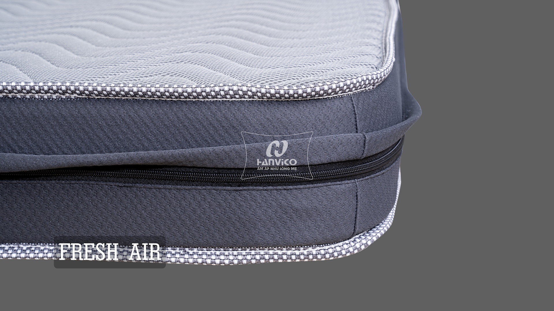 - Đệm Hanvico Fresh Air là sản phẩm đệm bông kháng khuẩn với lớp Foam than hoạt tính 3cm lõi bông chống khuẩn xanh 7cm trên công nghệ kháng khuẩn độc quyền của Hanvico.