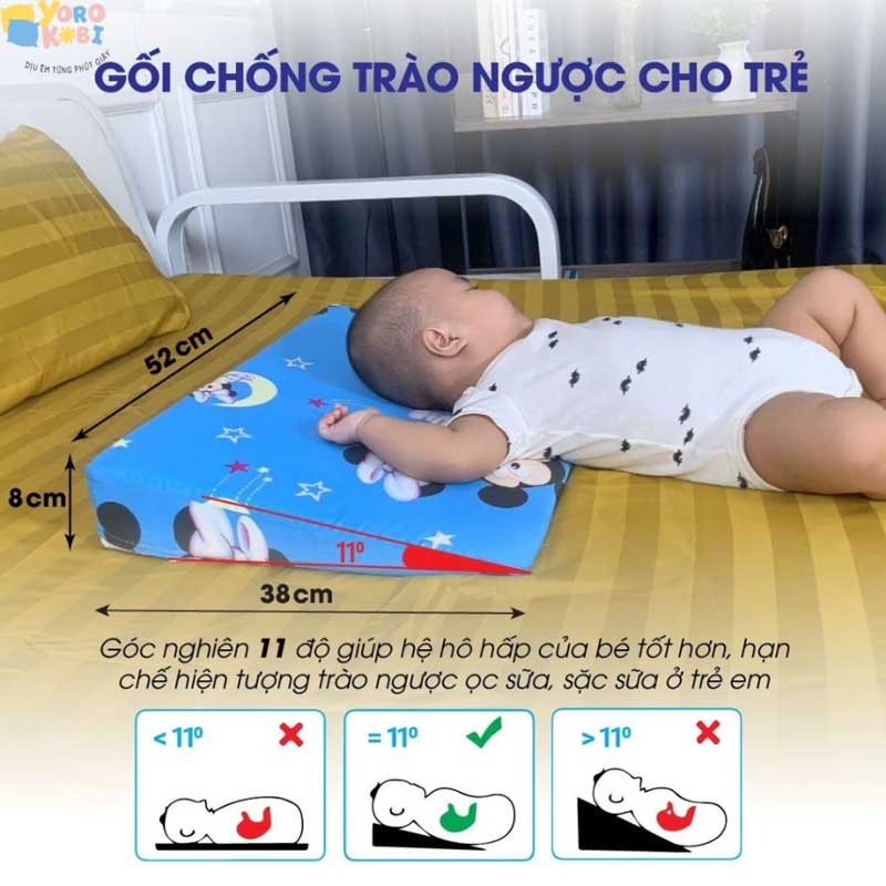 Gối chống trào ngược cho trẻ sơ sinh và trẻ nhỏ Yorokobi được thiết kế đặc biệt dành cho trẻ em từ khi chào đời đến 4 tuổi hiệu quả cải thiện tình trạng trào ngược, nôn trớ, hay ọc sữa,...