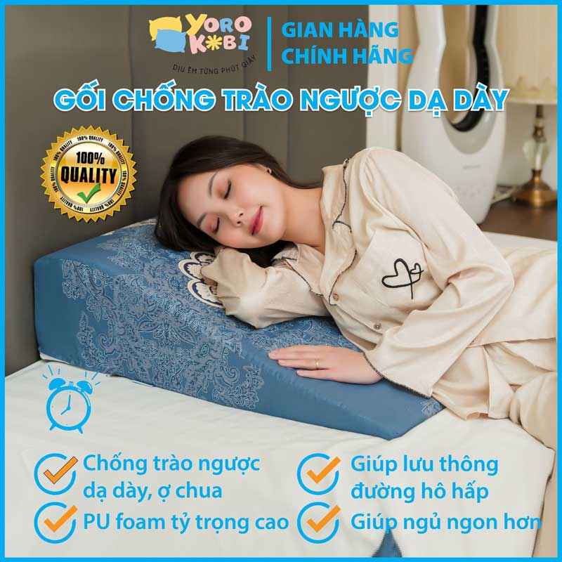 Gối chống trào ngược dạ dày Yorokobi được thiết kế bởi các chuyên gia trong lĩnh vực y tế, giúp giảm mạnh các triệu chứng trào ngược dạ dày về đêm, giúp hết ợ chua, nóng rát cổ, không còn đau tức ngực.