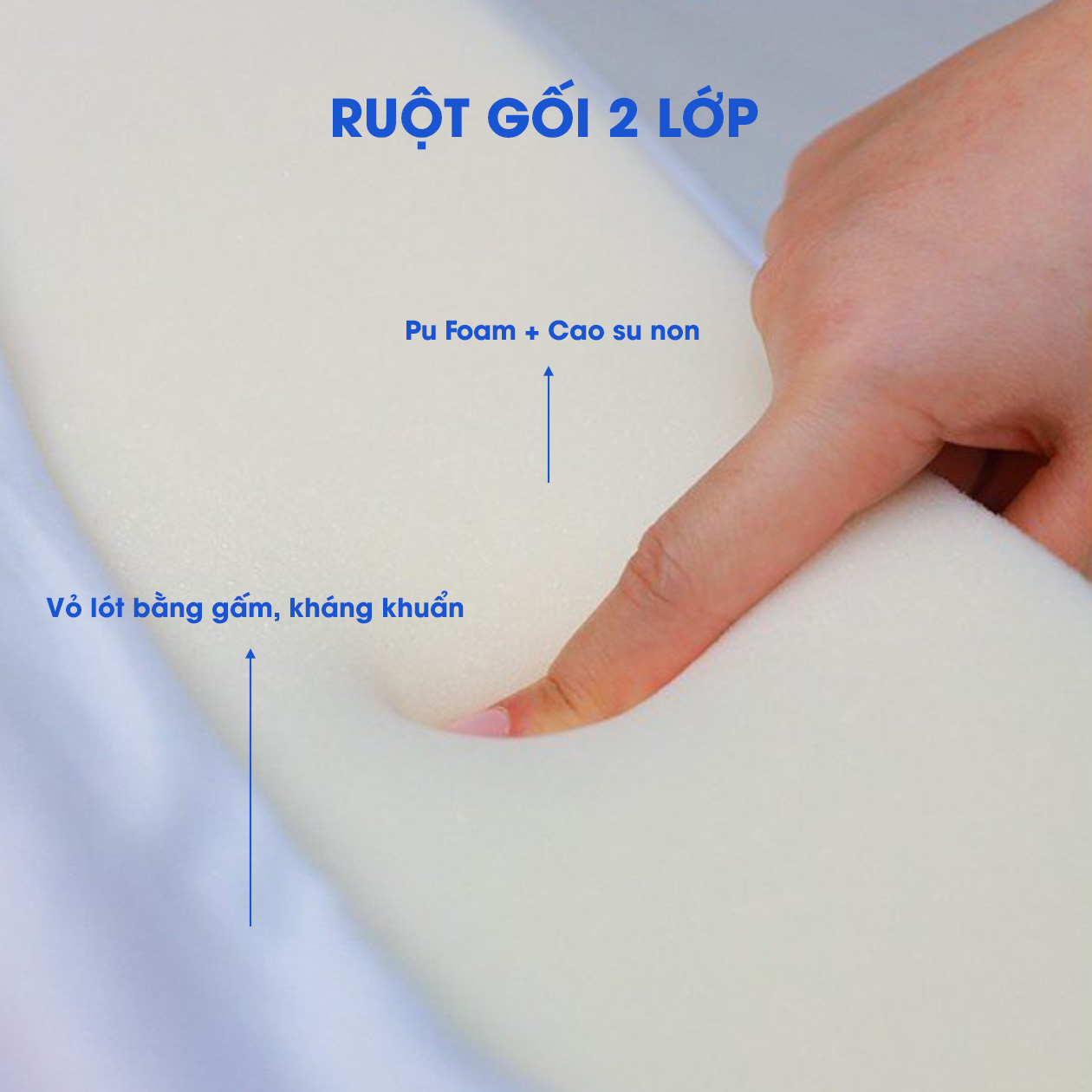 - Ruột gối: PU Foam và cao su non 30%, gối cực kỳ mềm mại và có độ đàn hồi cao, mang đến sự thoải mái và tiện lợi cho người dùng.
